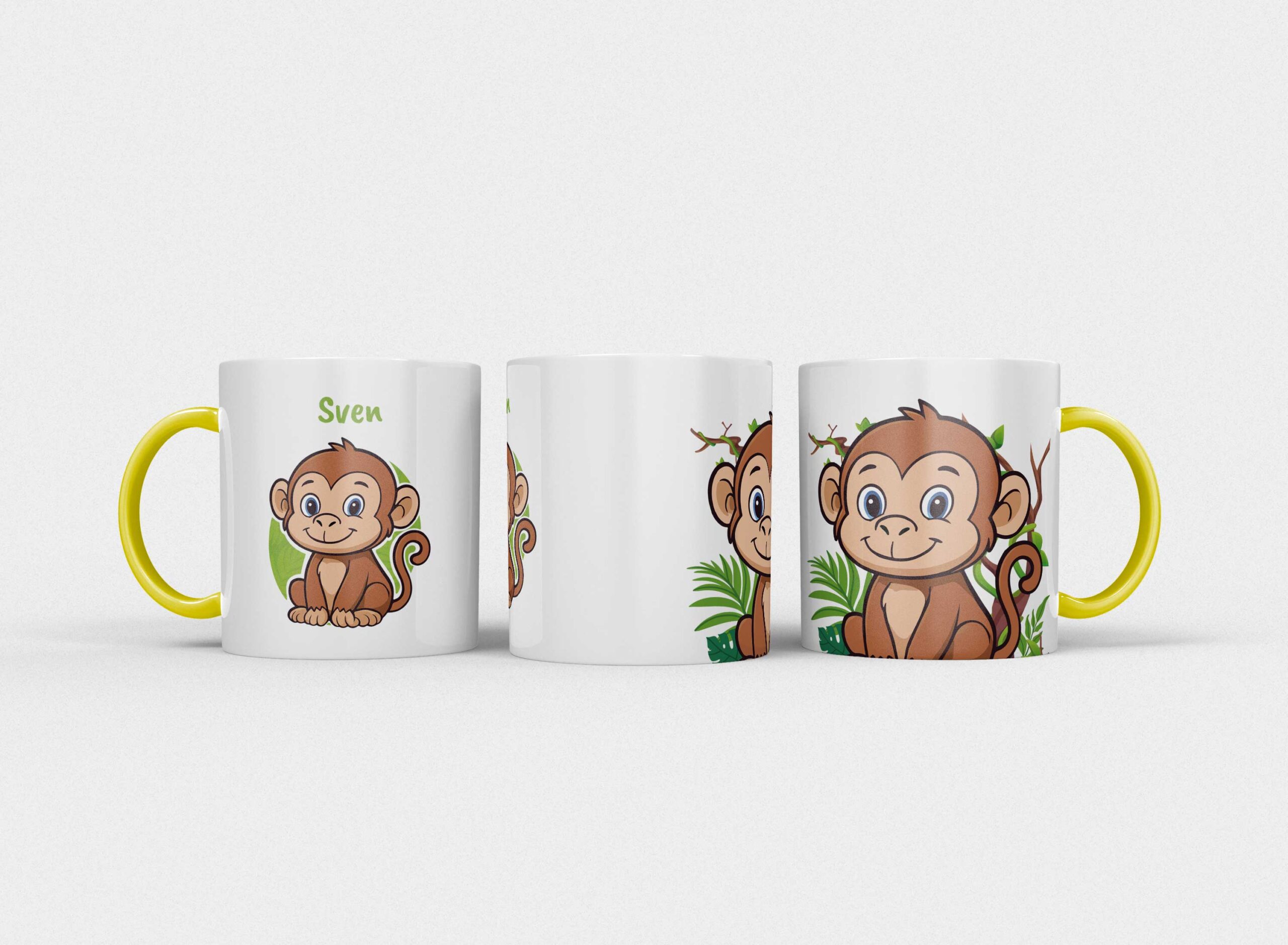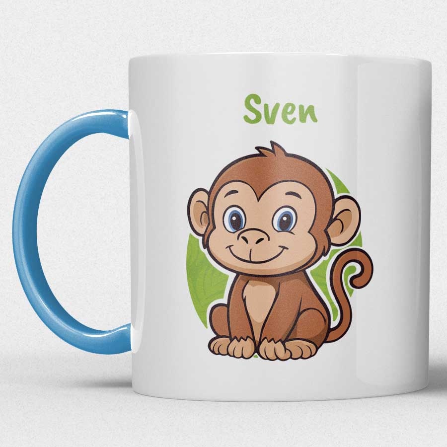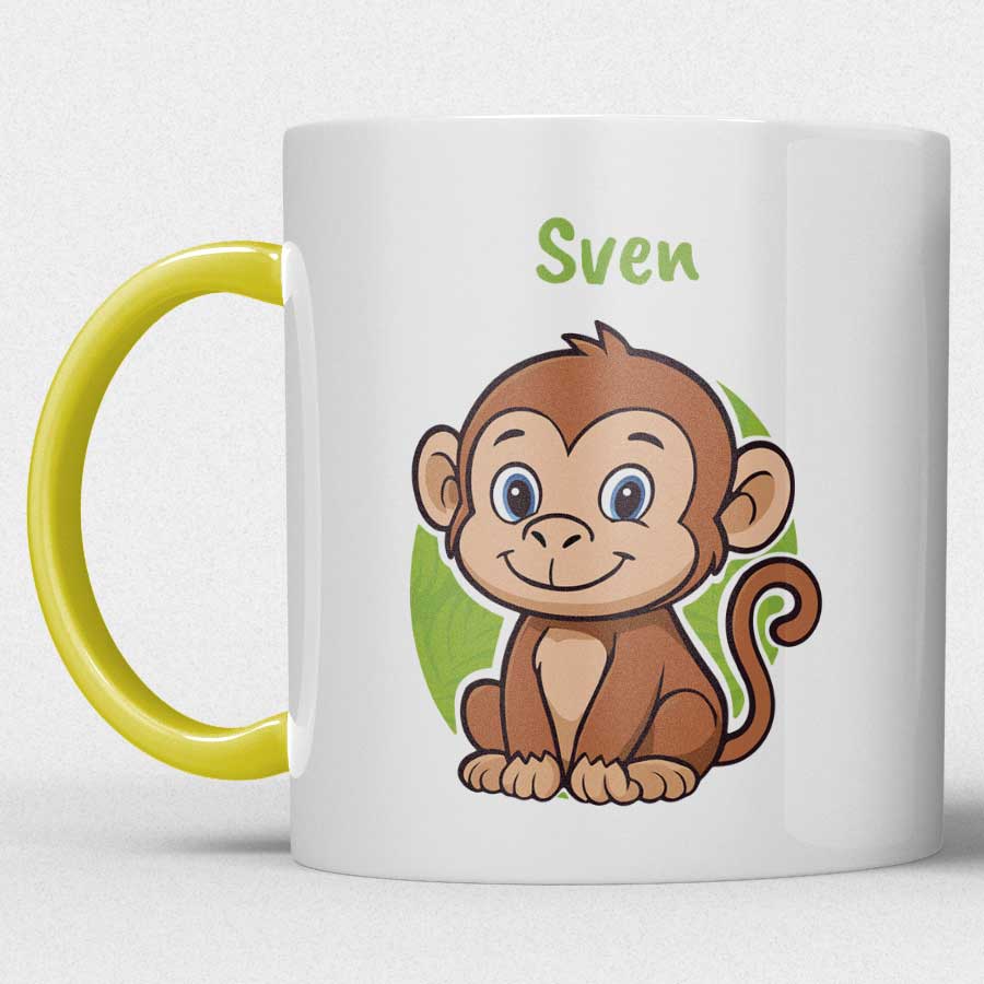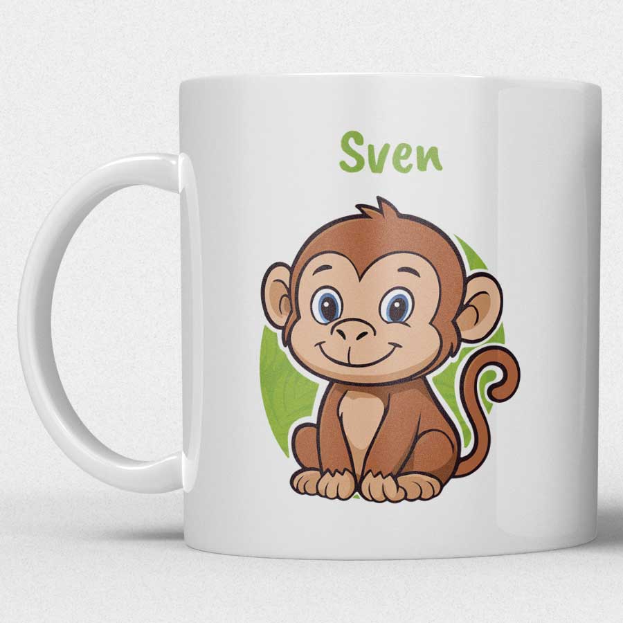 Kindermok met aap. Maak drinken een feestje met deze gepersonaliseerde kindermok met aap en naam! Op de mok staat een vrolijk aapje dat meteen een glimlach op het gezicht van je kind tovert. Voeg de naam van je zoon of dochter toe en je hebt een unieke mok die écht van hem of haar is.