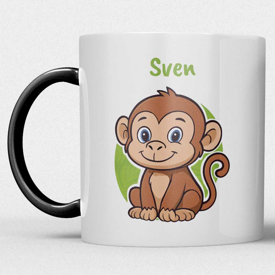 Met deze mok met aapje en naam wordt ieder drinkmoment vrolijk en persoonlijk!