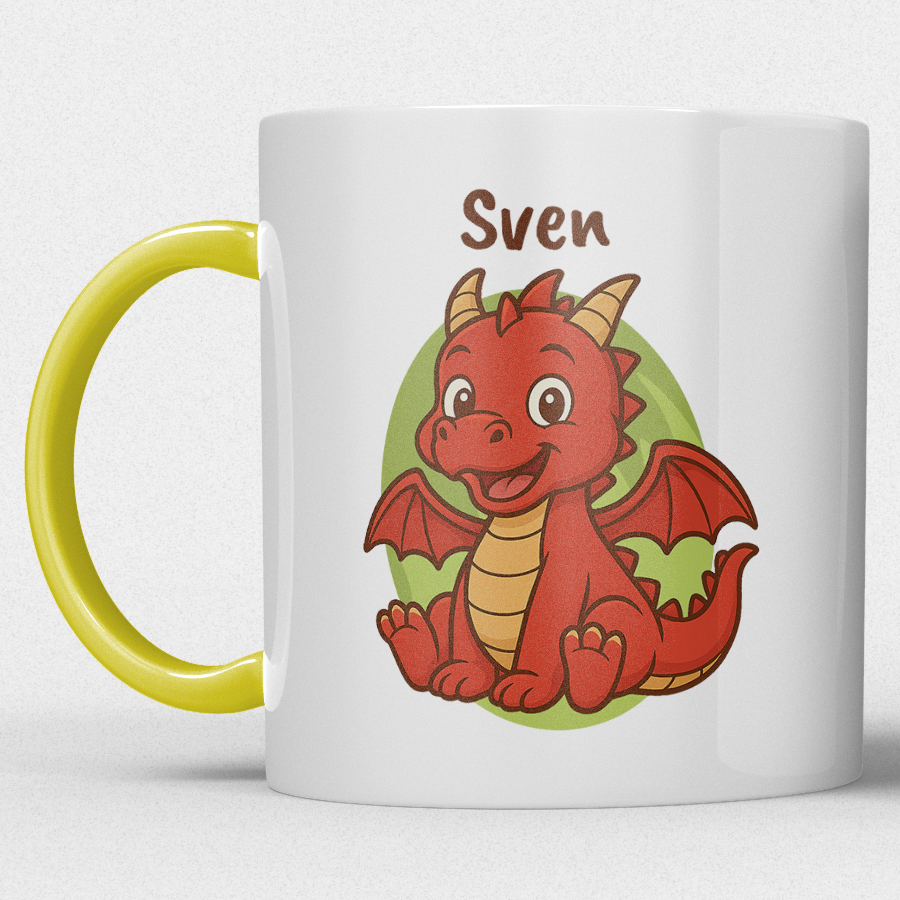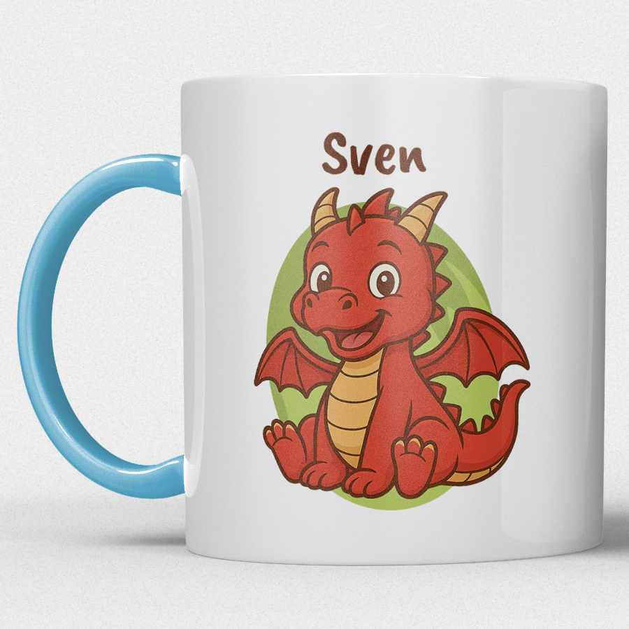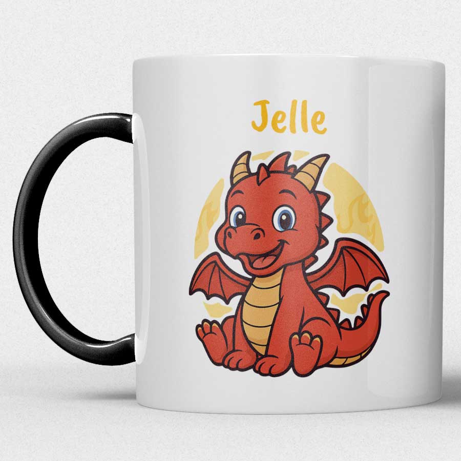Laat de fantasie van je kind tot leven komen met deze kindermok met leuke draak en eigen naam! Het vrolijke en speelse draken-design maakt elke slok een avontuur. Dankzij de mogelijkheid om de mok te personaliseren met een eigen naam, is dit een uniek en speciaal cadeau dat kinderen elke dag met plezier gebruiken.