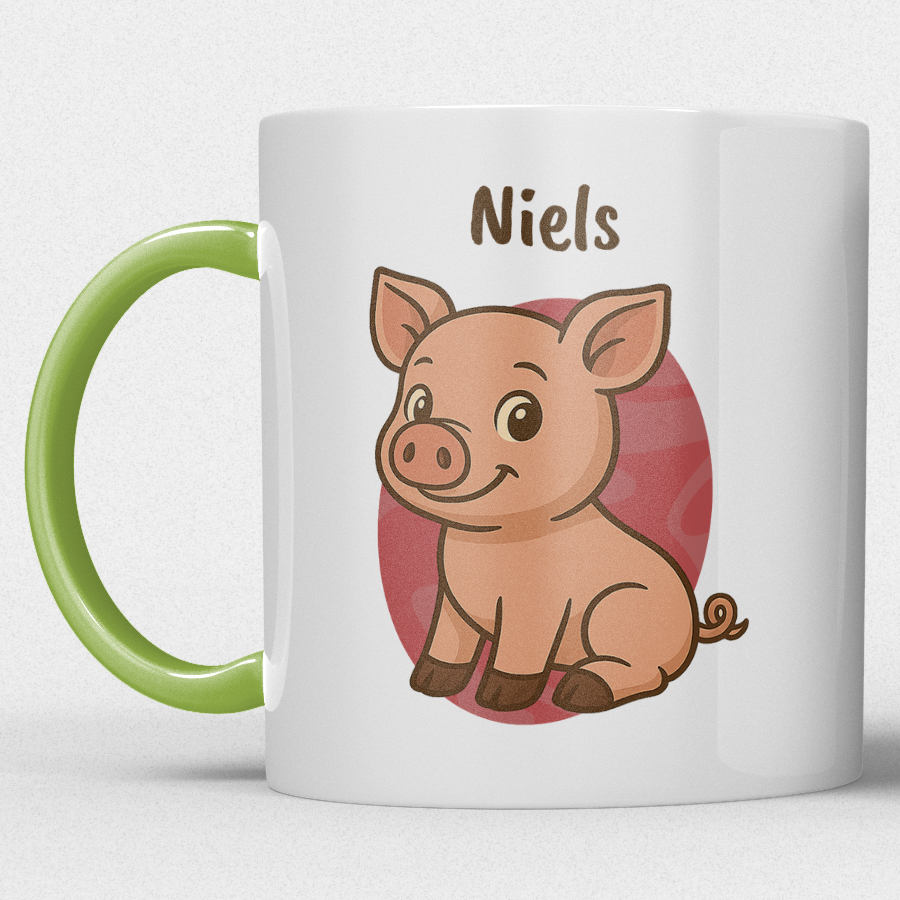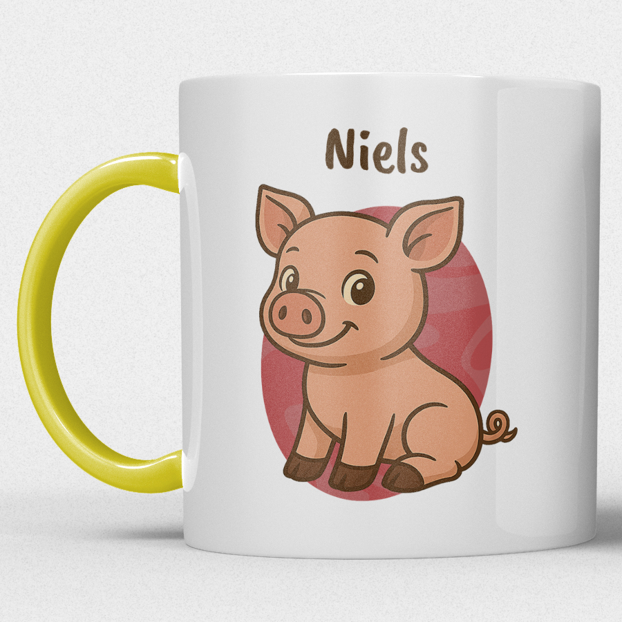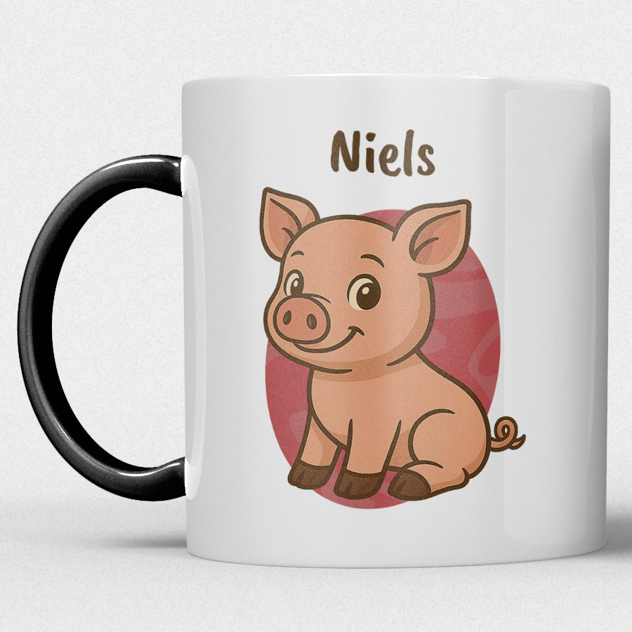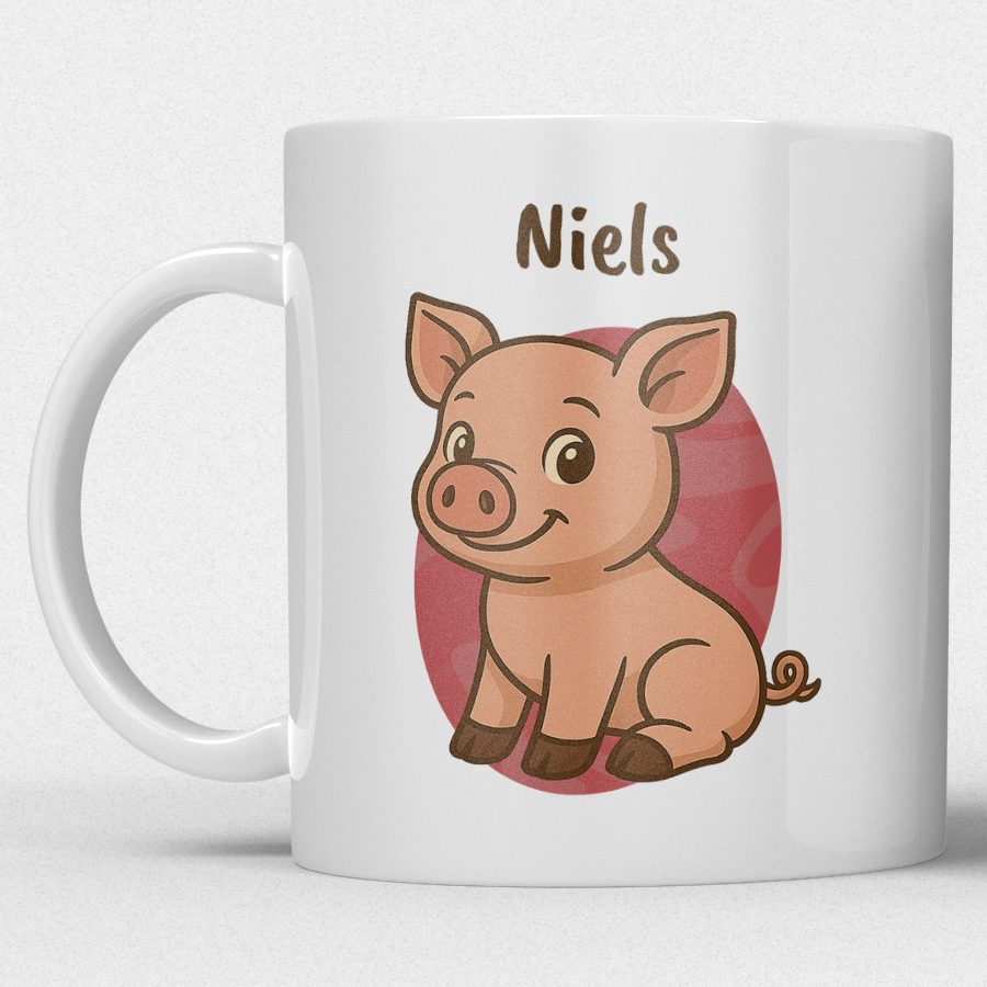 Maak je chocolade, yoghurt- of theemoment extra speciaal met deze gepersonaliseerde mok met varkentje en naam! Het vrolijke design met een schattig varkentje wordt nog leuker wanneer je jouw eigen naam (of die van iemand anders) erop laat zetten. Zo heb je niet alleen een handige mok, maar ook een uniek en persoonlijk cadeau.