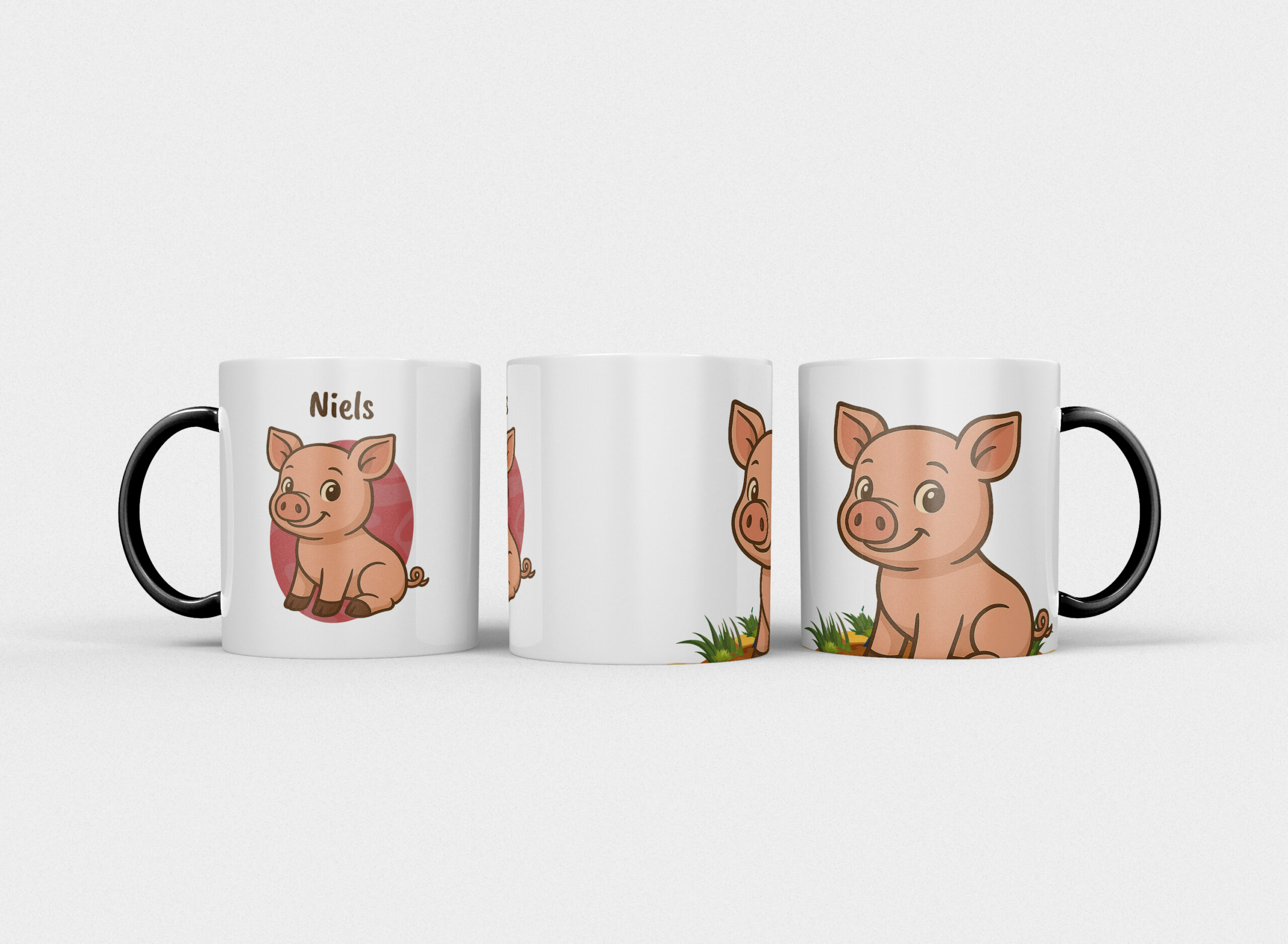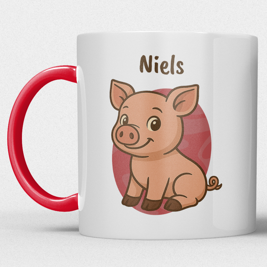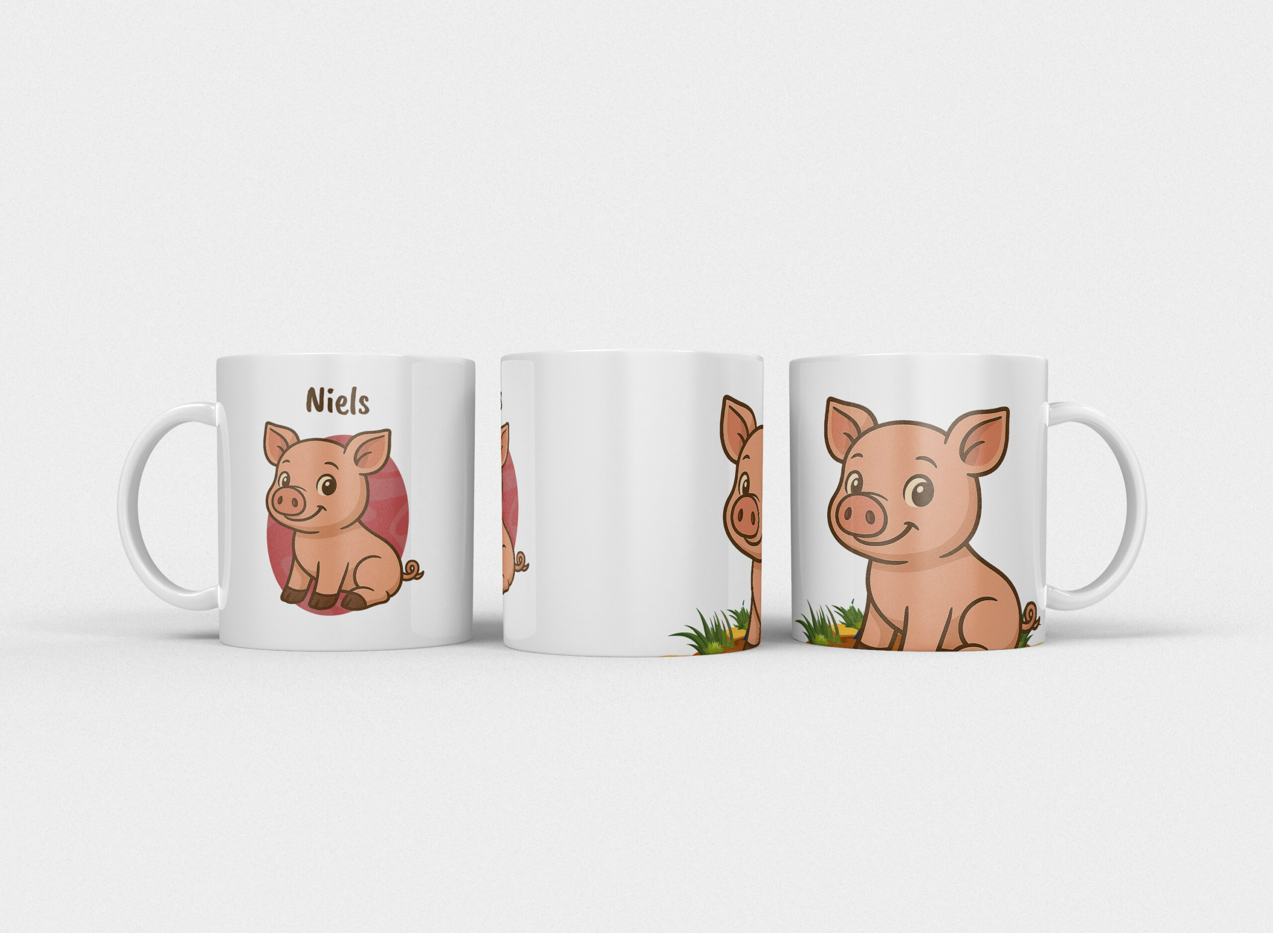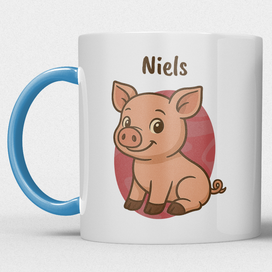 Maak je chocolade, yoghurt- of theemoment extra speciaal met deze gepersonaliseerde mok met varkentje en naam! Het vrolijke design met een schattig varkentje wordt nog leuker wanneer je jouw eigen naam (of die van iemand anders) erop laat zetten. Zo heb je niet alleen een handige mok, maar ook een uniek en persoonlijk cadeau.