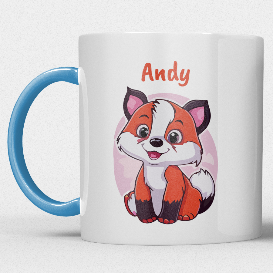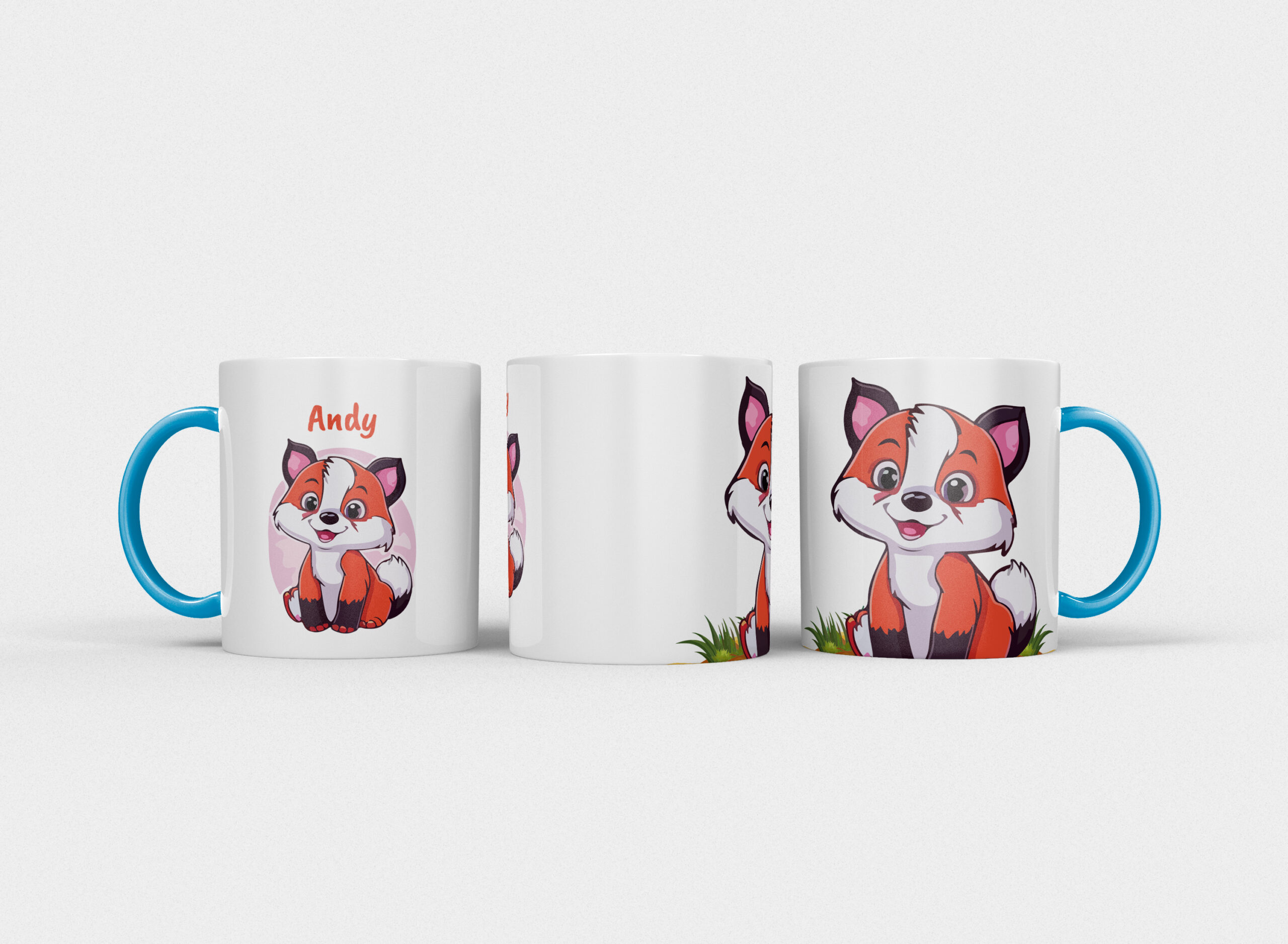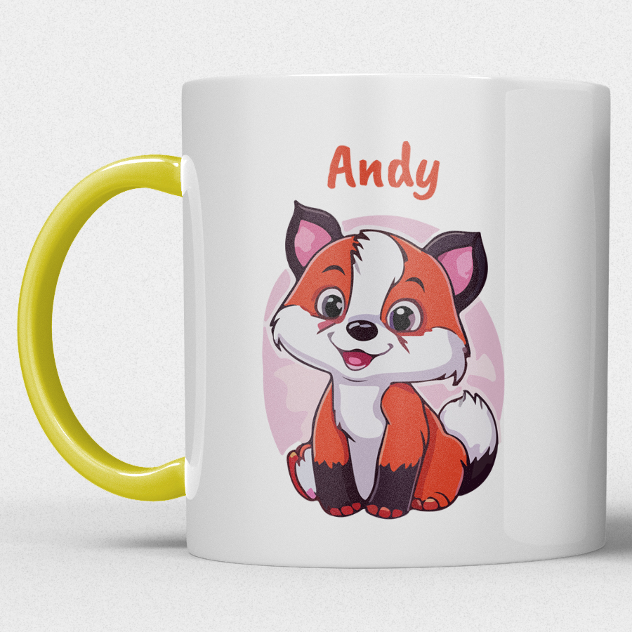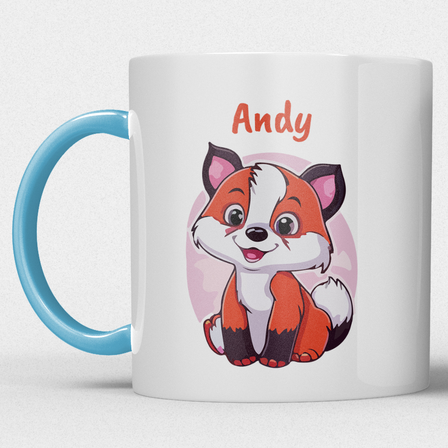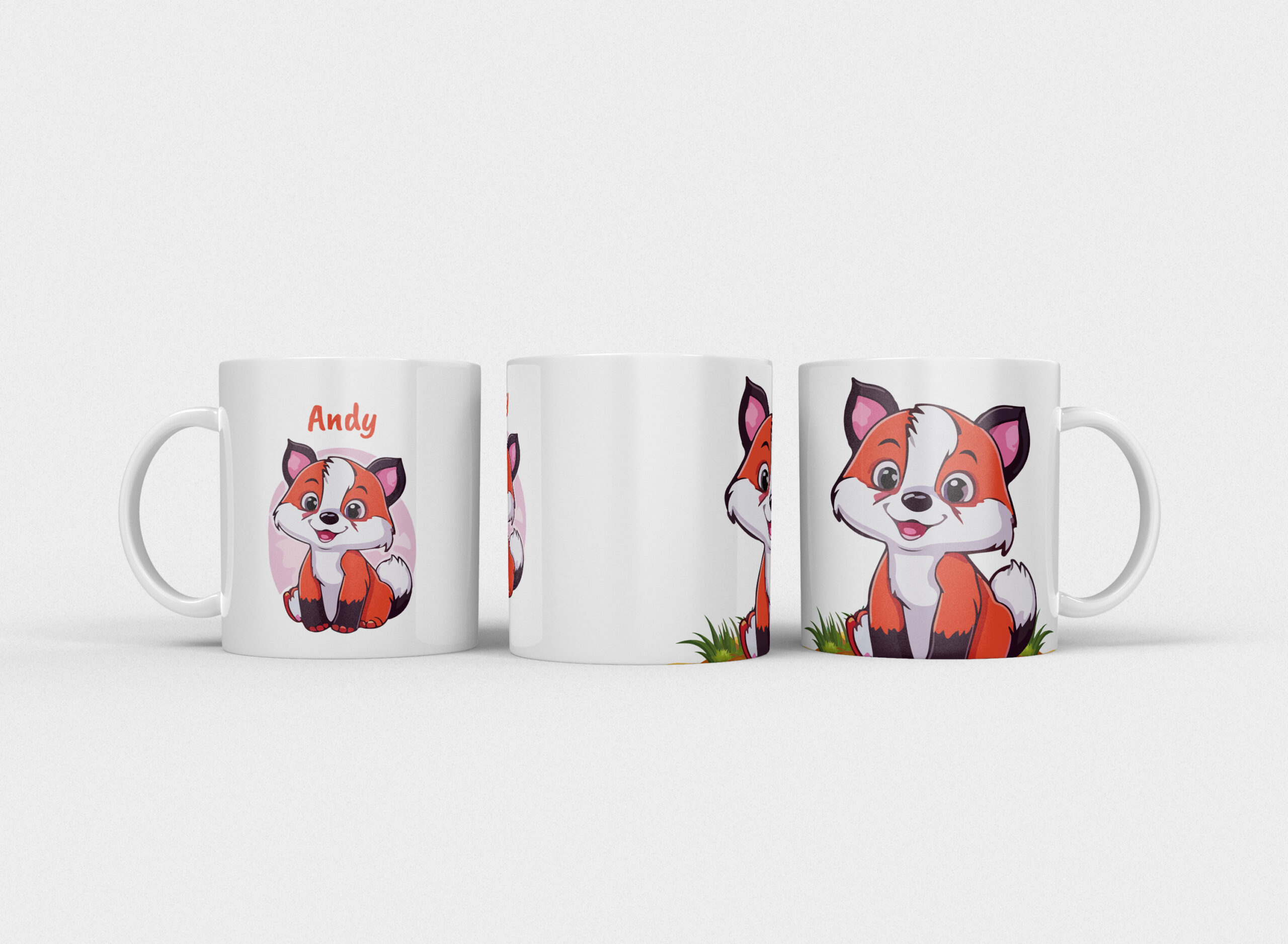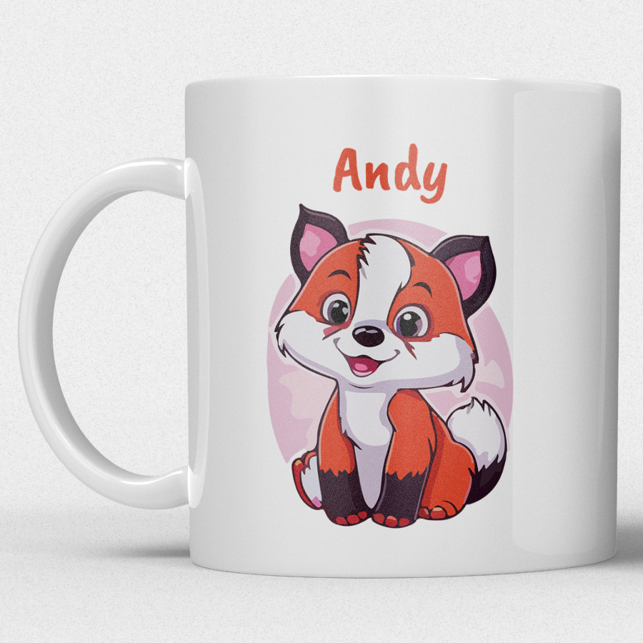 Schattige kindermok met vos en naam. Persoonlijk, uniek en verkrijgbaar in diverse kleuren. Het perfecte cadeau voor kinderen die van vossen houden!