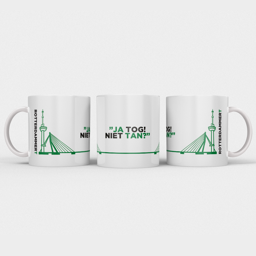 Met de iconische uitspraak “Ja tog! Niet tan?” is dit dé koffiemok voor elke echte Rotterdammer of liefhebber van de havenstad.